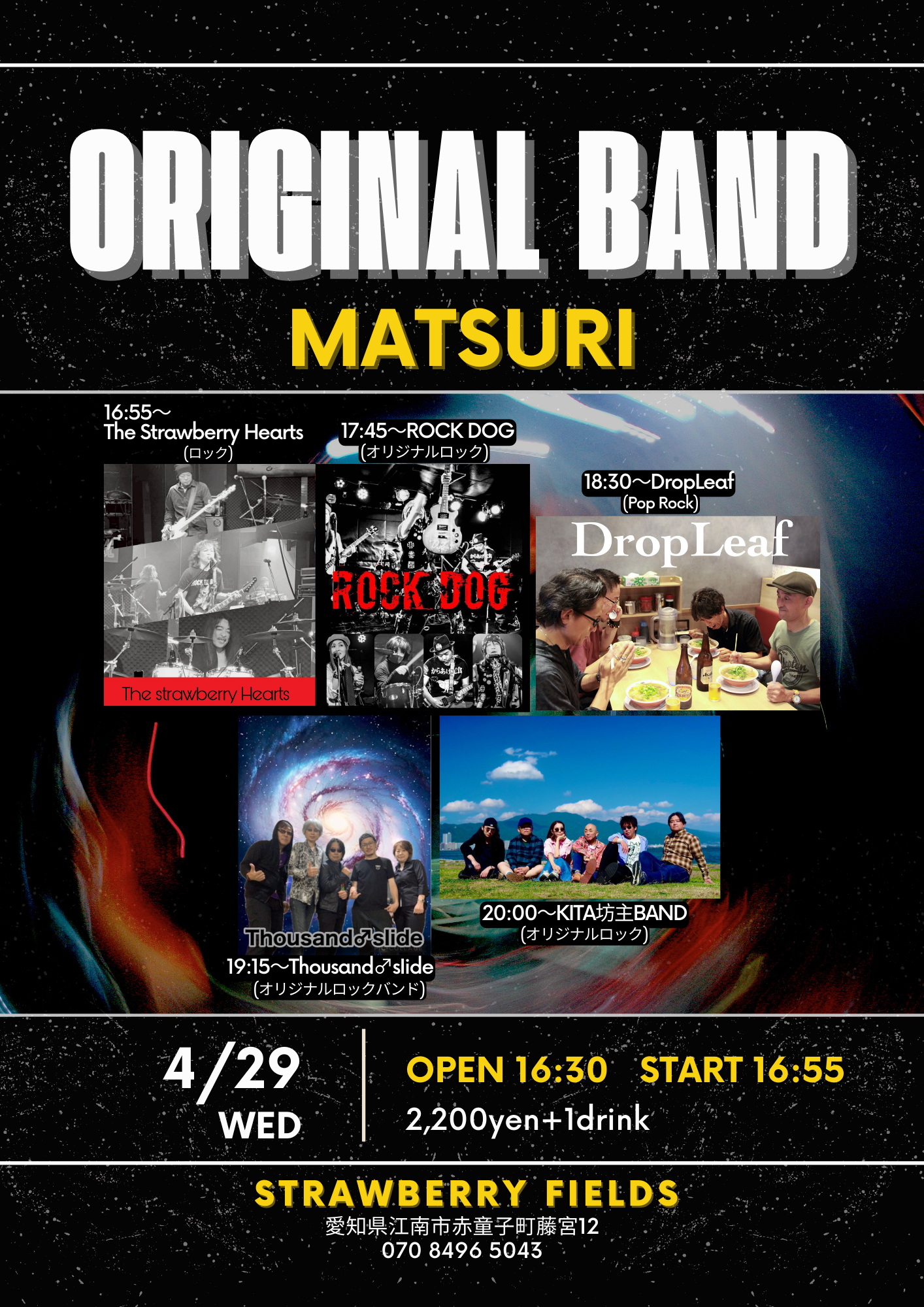 5組のオリジナル曲バンドによるジョイントライブです。